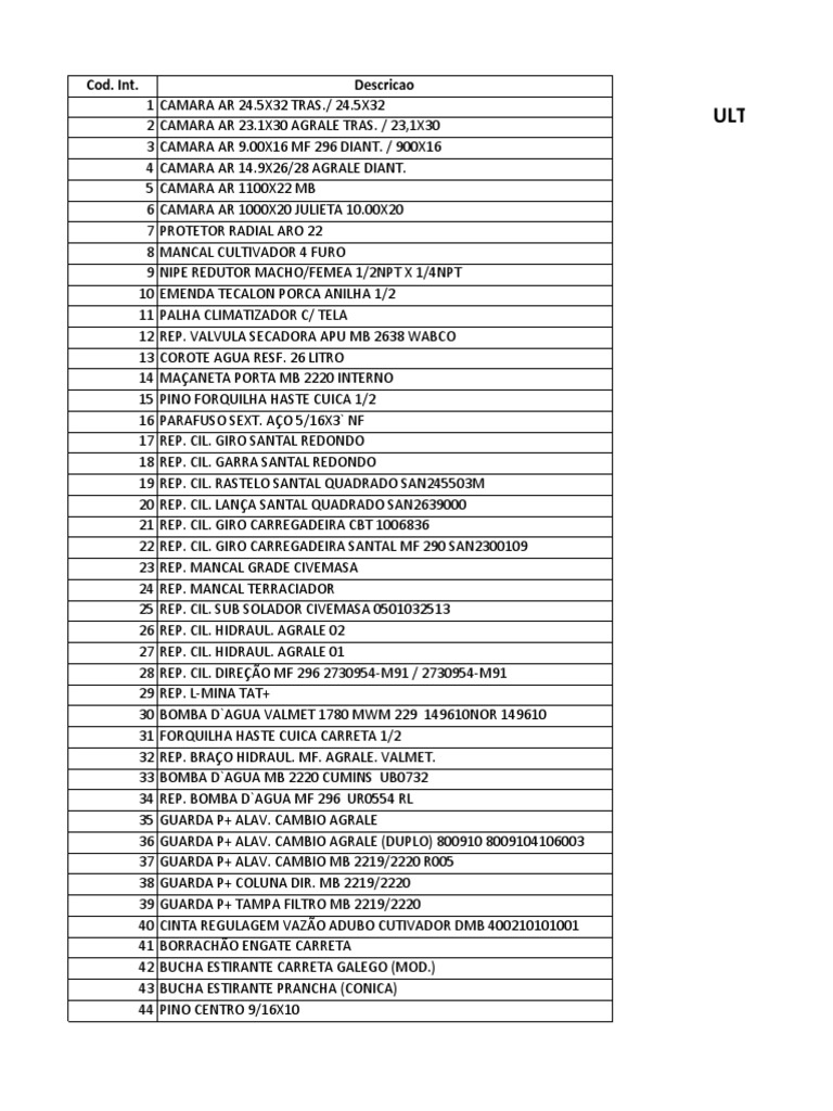 CÓD INT: ESTOQUE: DESCRIÇÃO:
