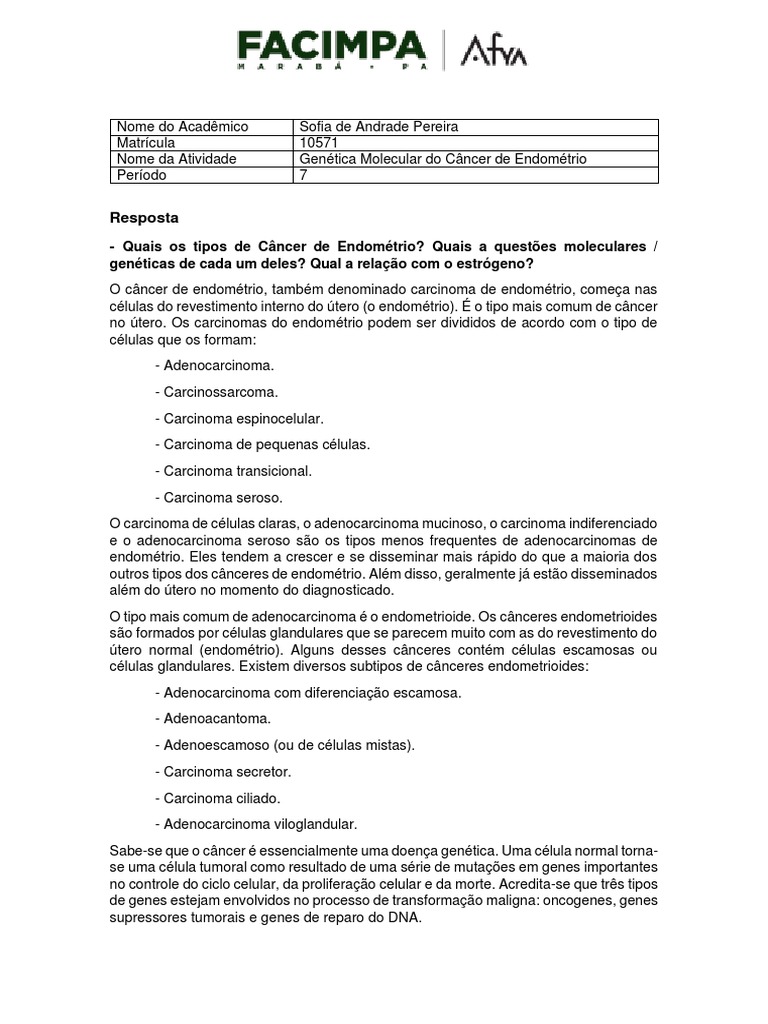 Nome da Atividade Genética Molecular do Câncer de Endométrio