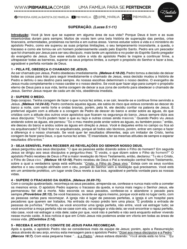 do evangelho de Jesus. Que esse estudo sobre a vida do apóstolo Pedro te inspire a continuar firme, a