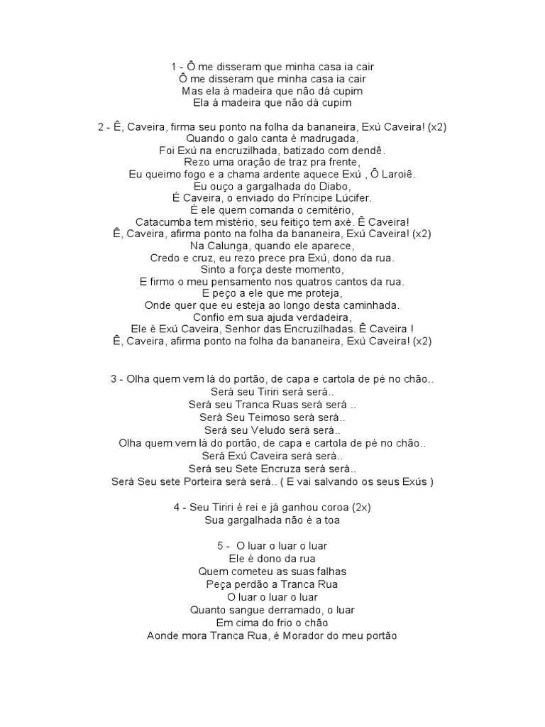 2 - Ê, Caveira, firma seu ponto na folha da bananeira, Exú Caveira! (x2)