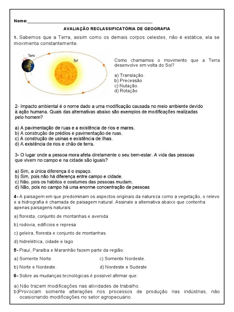 AVALIAÇÃO RECLASSIFICATÓRIA DE GEOGRAFIA