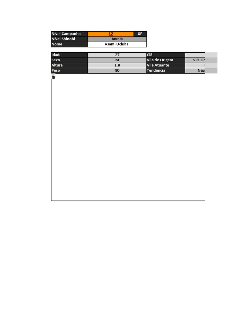 Atenção: Nos campos de seleção para Pontos Kami, Sharingan, Velocista e etc. Marque (Sim = 1)(Não = 0)