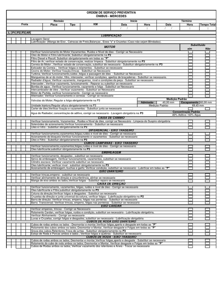 Óleo lubrificante e Filtro;substituir obrigatoriamente na P3