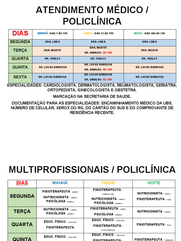 MARCAÇÃO NA POLICLÍNICA DE: USG E MULTIPROFISSIONAIS.