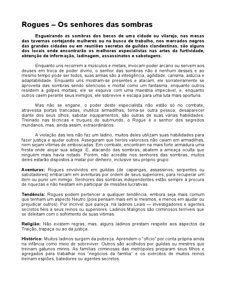 Tendência: Rogues podem pertencer a qualquer tendência, embora seja mais comum