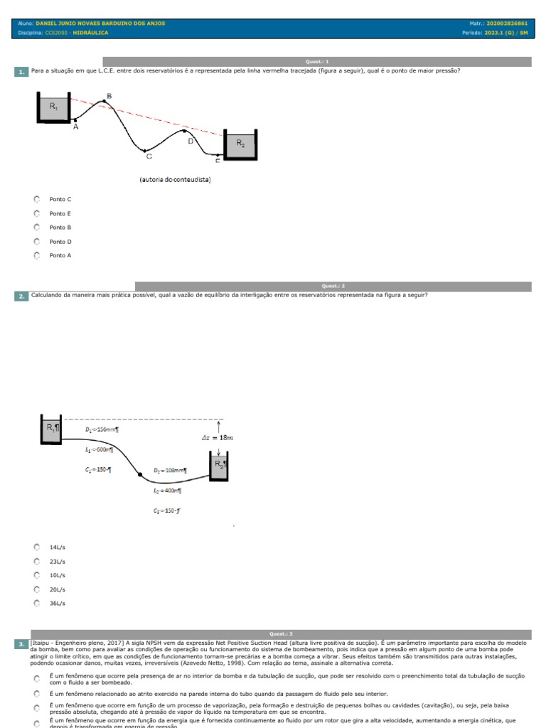 3. [Itaipu - Engenheiro pleno, 2017] A sigla NPSH vem da expressão Net Positive Suction Head (altura livre positiva de sucção). É um parâmetro importante para escolha do modelo