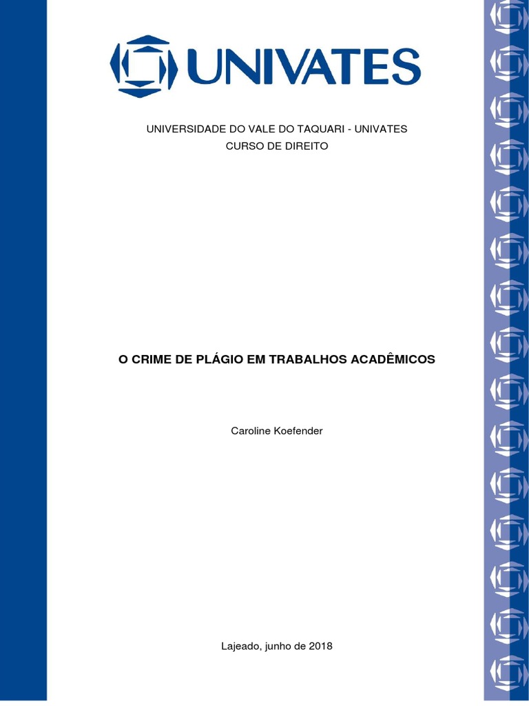 Esta monografia tem como objetivo geral exemplificar os tipos de plágio acadêmico e
