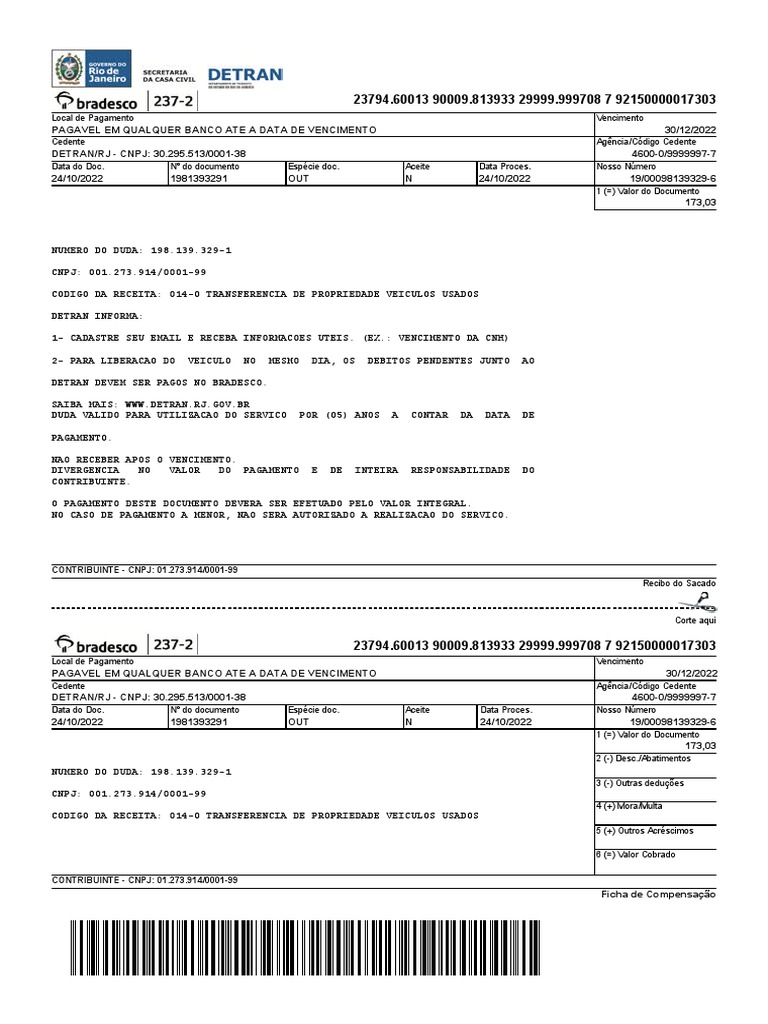DETRAN DEVEM SER PAGOS NO BRADESCO.