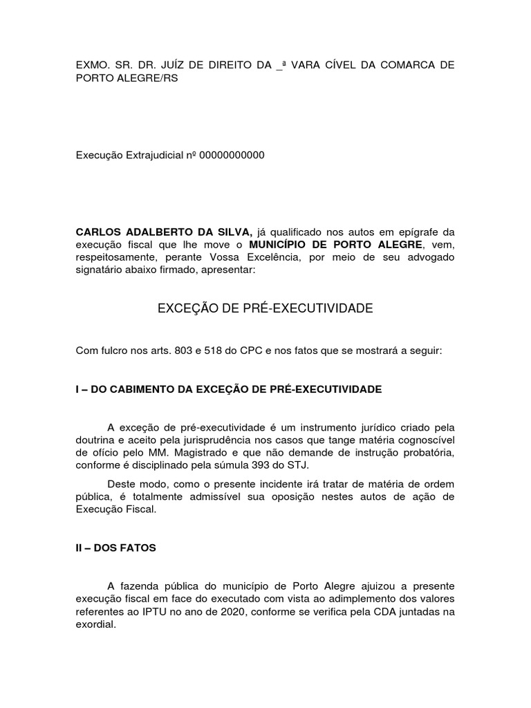 execução fiscal que lhe move o MUNICÍPIO DE PORTO ALEGRE, vem,