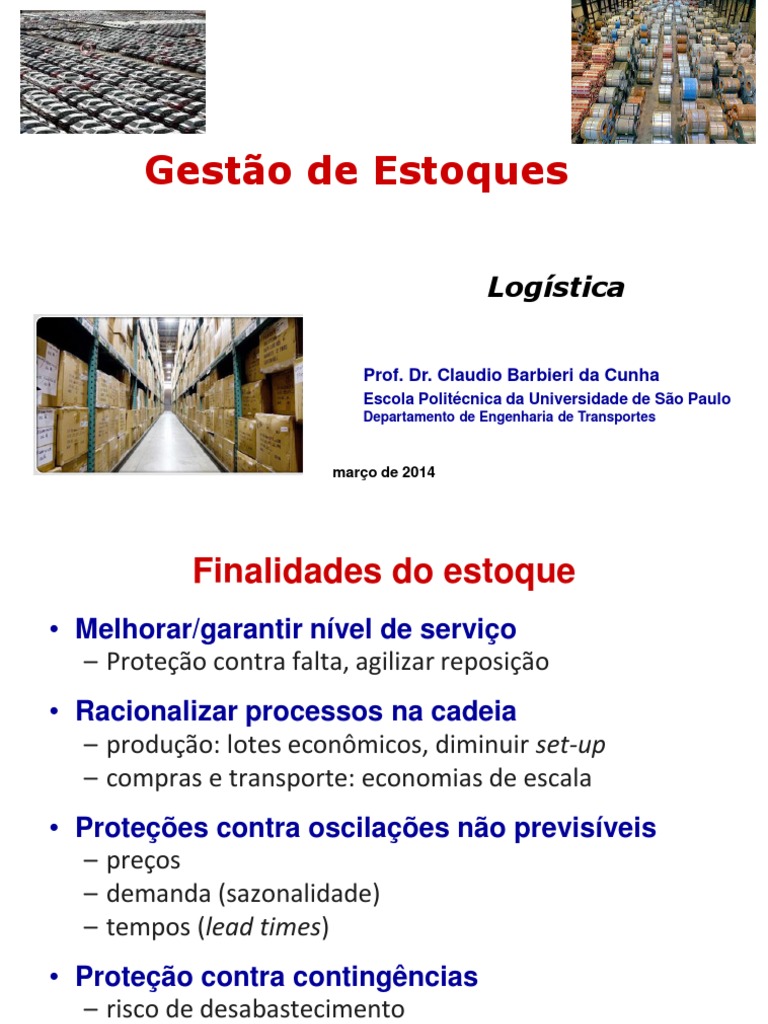 – armazenagem (espaço físico) e controle (rastreamento)