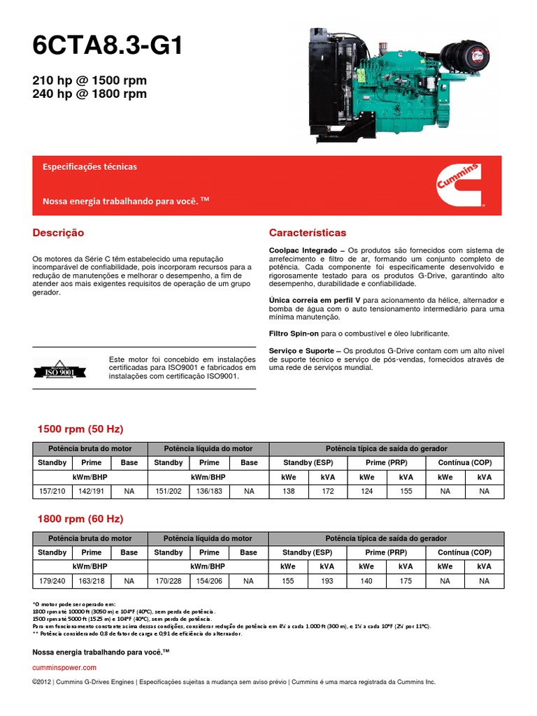 ©2012 | Cummins G-Drives Engines | Especificações sujeitas a mudança sem aviso prévio | Cummins é uma marca registrada da Cummins Inc.