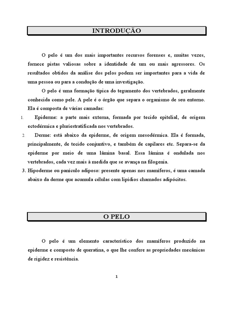 Cada pelo (figura 1) é formado no folículo piloso (invaginação da