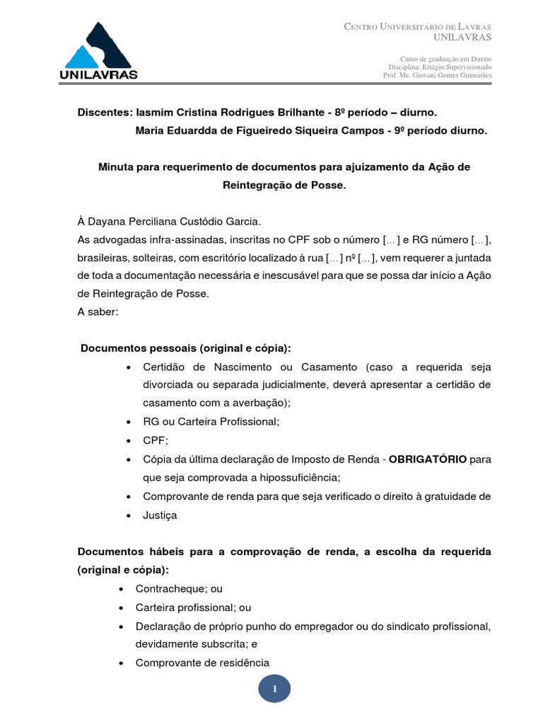 Minuta para requerimento de documentos para ajuizamento da Ação de