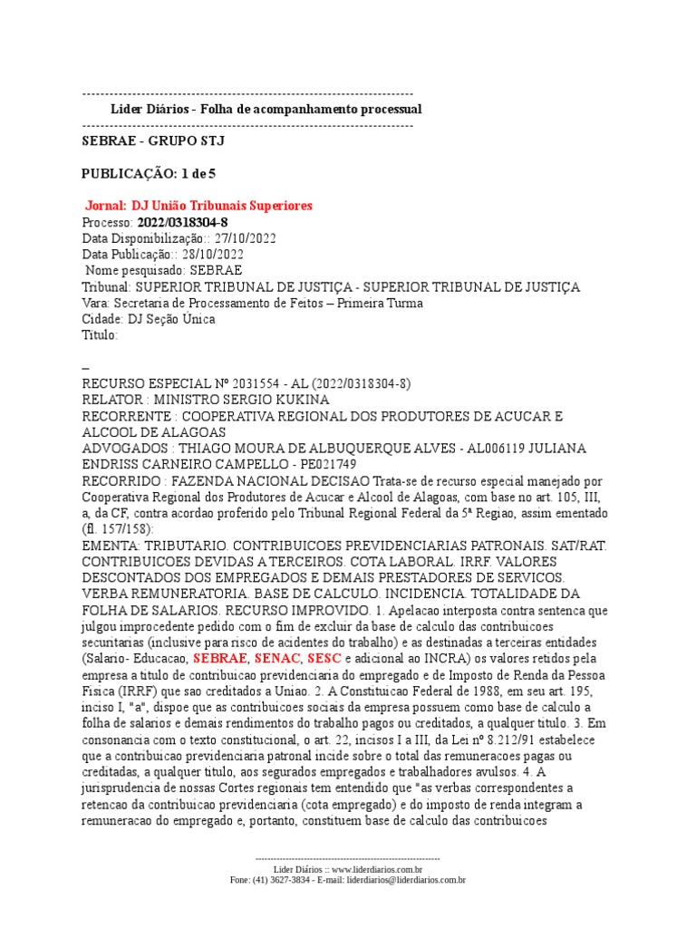 Valdeci dos Santos, 1ª Turma, Data: 23/03/2021). 7. A incidencia das contribuicoes destinadas a
