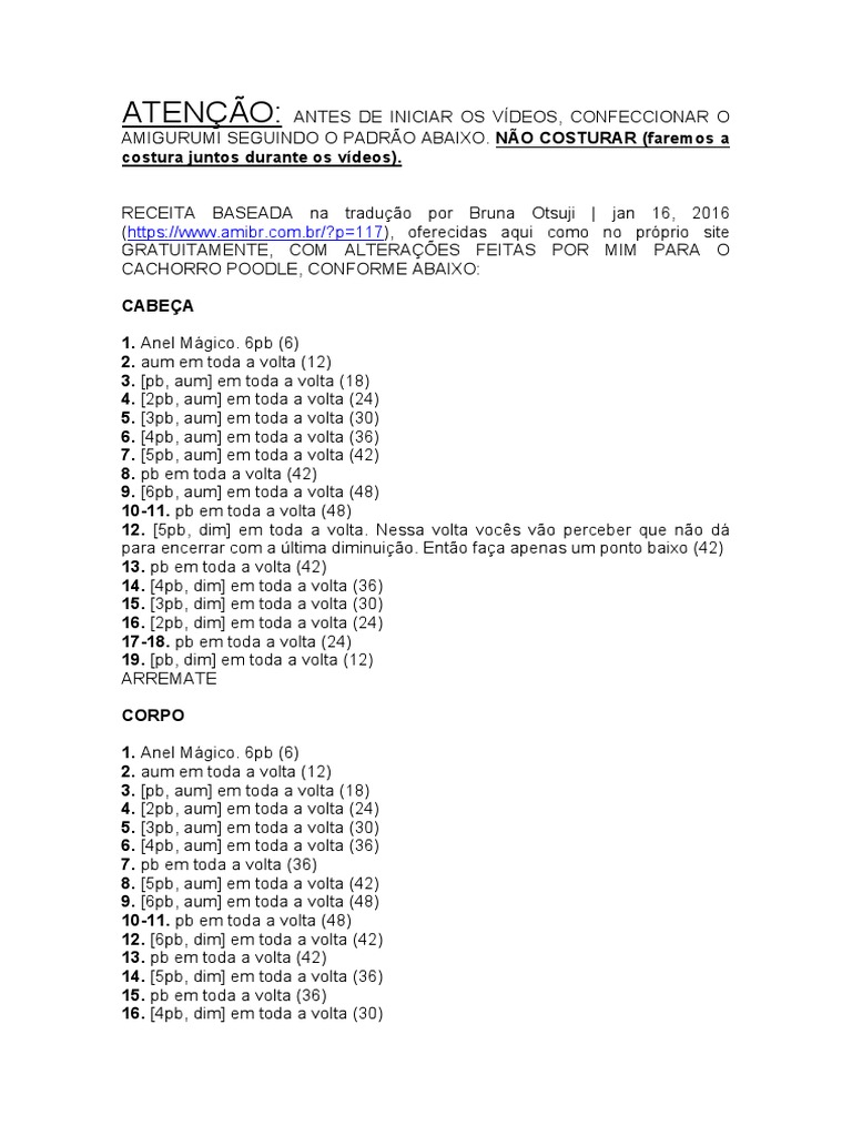 AMIGURUMI SEGUINDO O PADRÃO ABAIXO. NÃO COSTURAR (faremos a