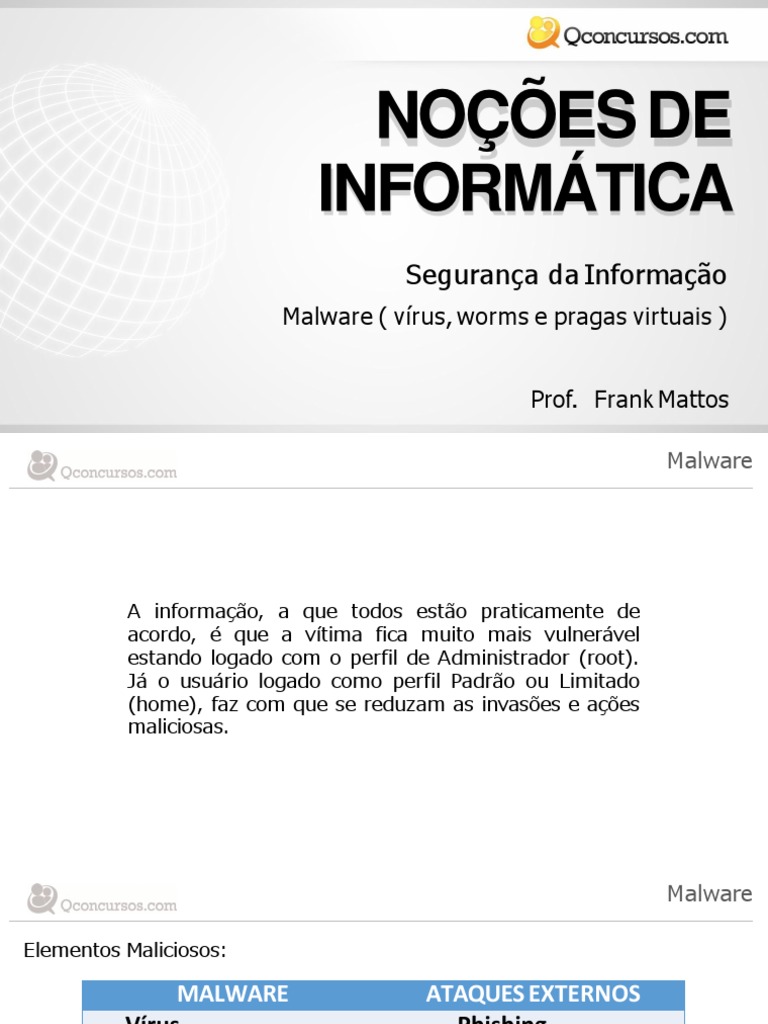 Malware ( vírus, worms e pragas virtuais )