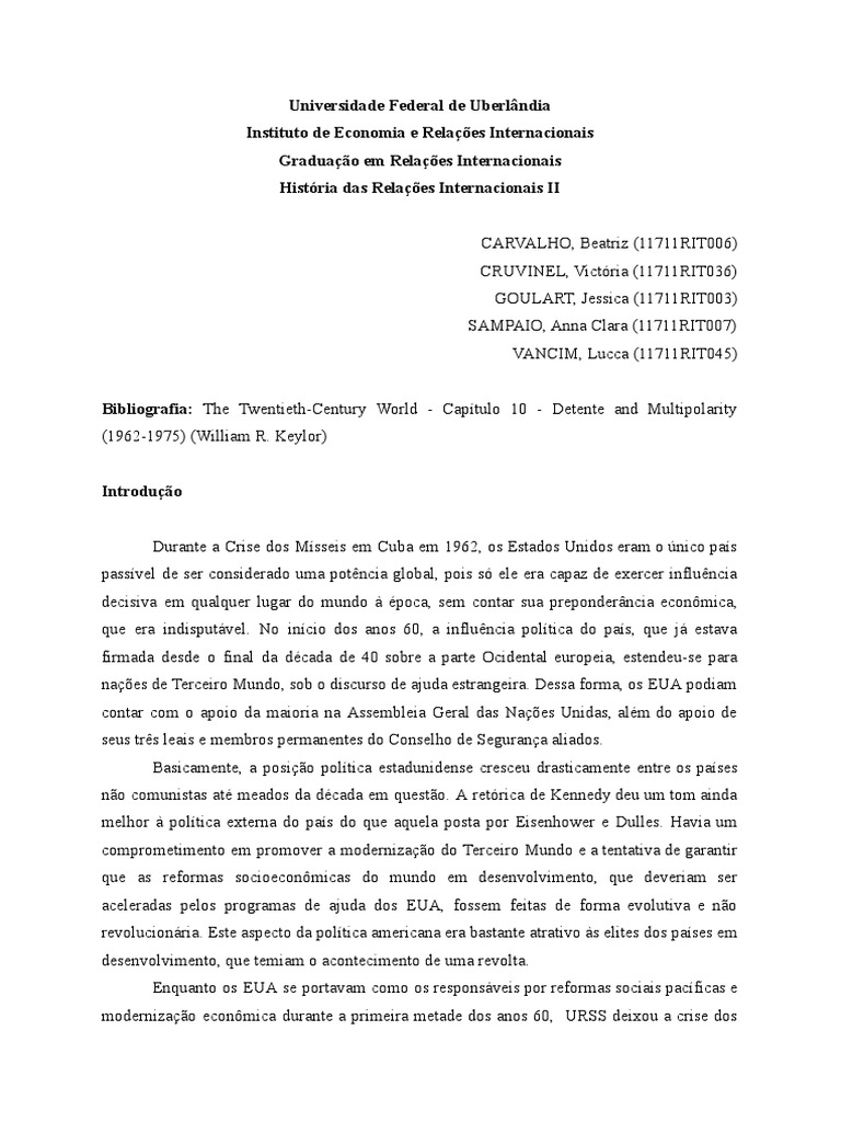 Bibliografia: The Twentieth-Century World - Capítulo 10 - Detente and Multipolarity