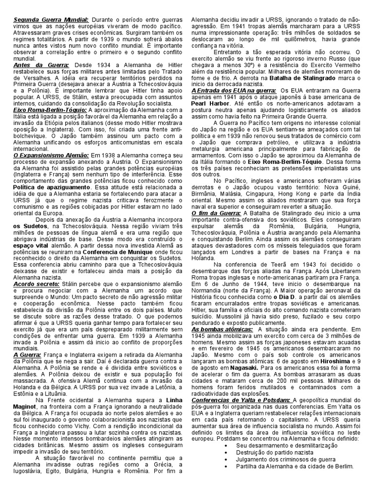 Causas e Consequências da Segunda Guerra