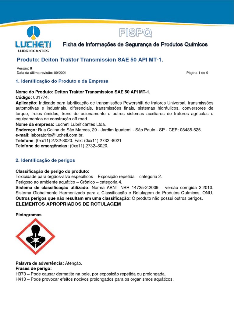 versão corrigida: 2010 (Sistema de classificação de perigo), NBR 14725 - 3:2017 (Rotulagem), NBR