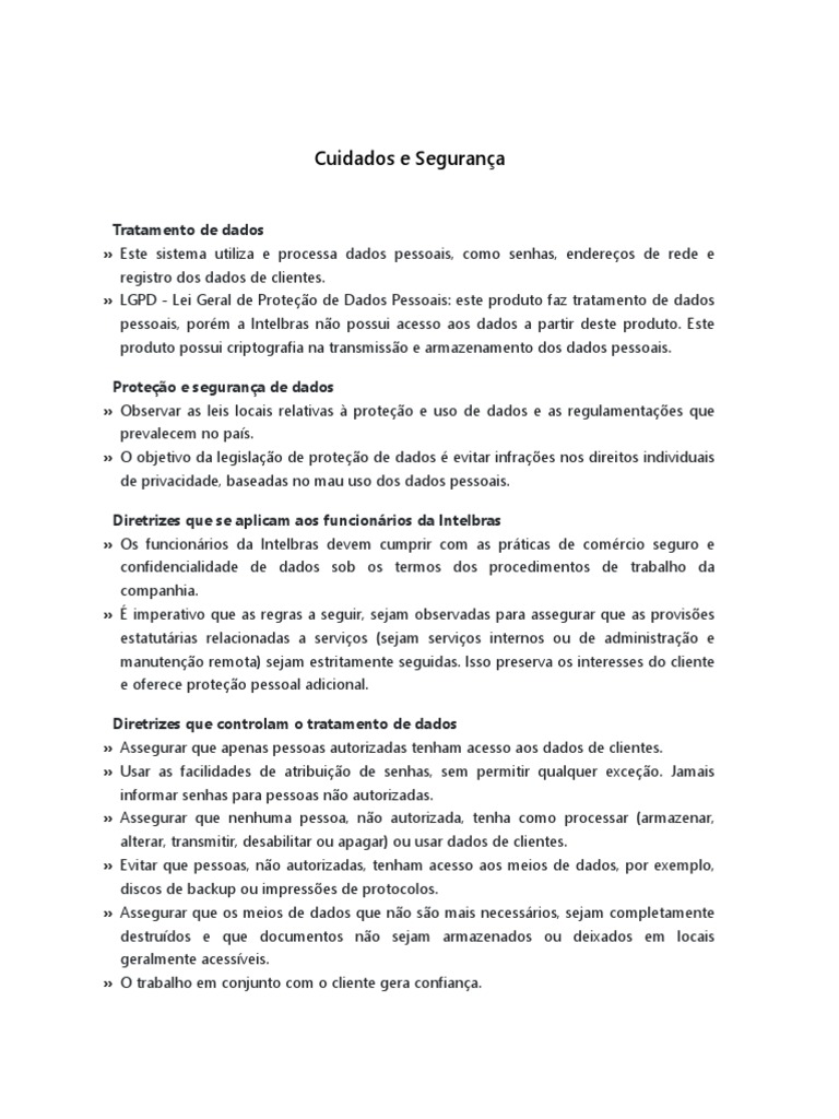 pessoais, porém a Intelbras não possui acesso aos dados a partir deste produto. Este