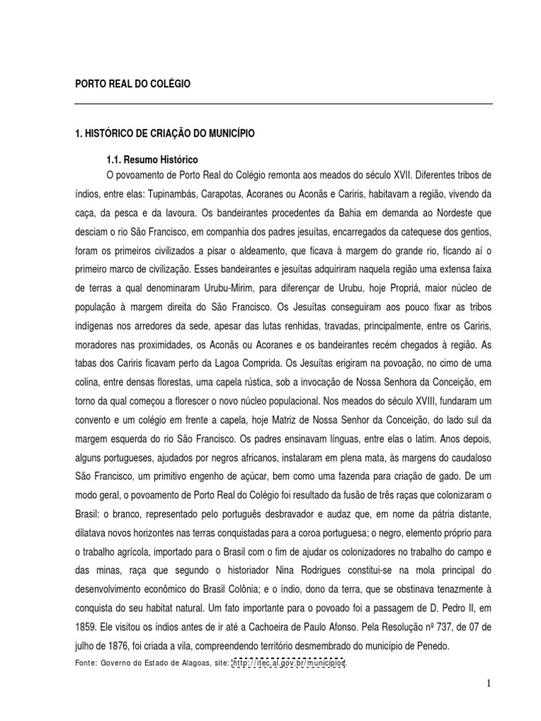 modo geral, o povoamento de Porto Real do Colégio foi resultado da fusão de três raças que colonizaram o