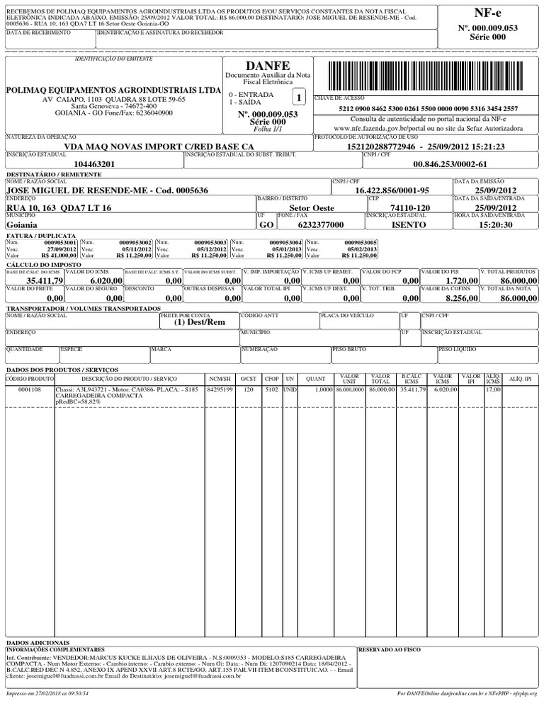 Impresso em 27/02/2018 as [Link] Por DANFEOnline [Link] e NFePHP - [Link]