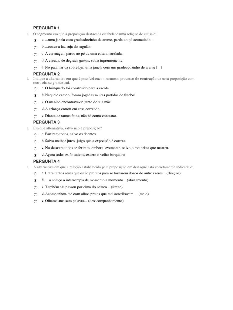 1. Em que alternativa, salvo não é preposição?