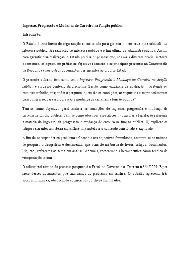 O presente trabalho tem como tema Ingresso, Progressão e Mudança de Carreira na função