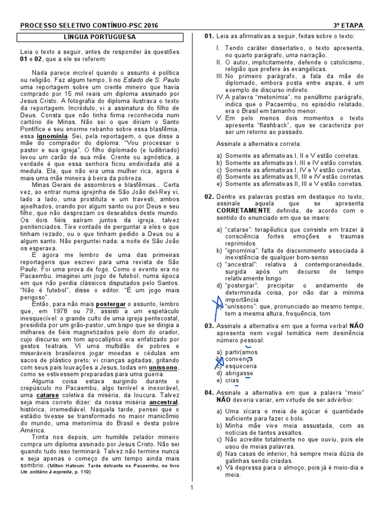 PROCESSO SELETIVO CONTÍNUO-PSC 2016 REDAÇÃO