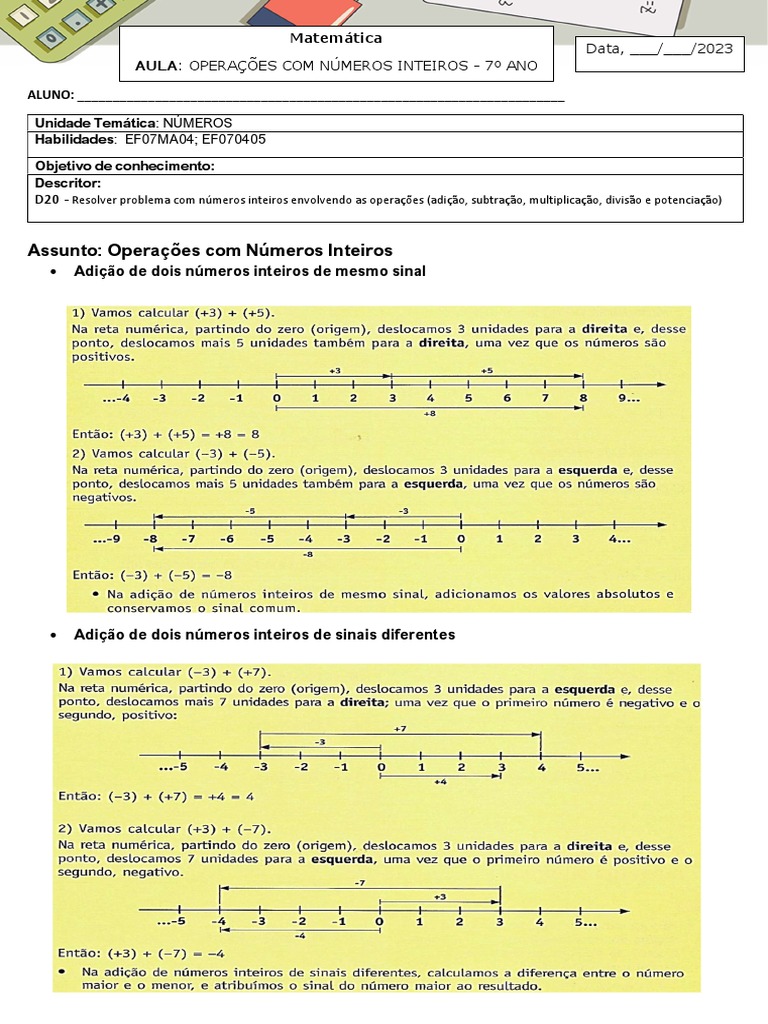 Assunto: Operações com Números Inteiros