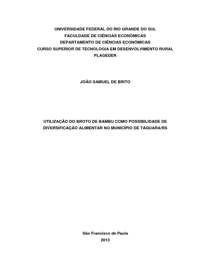 bambu poderiam ser inseridos na alimentação da população de Taquara e também