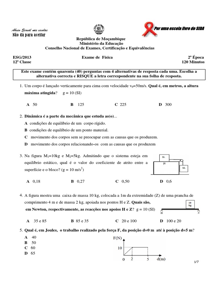 2013/Exame de Física/12ª Classe/ 2ª Época