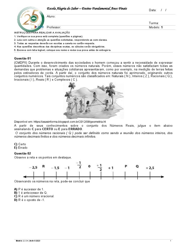Modelo: 1 2 3 4 | teste 8 2023 2