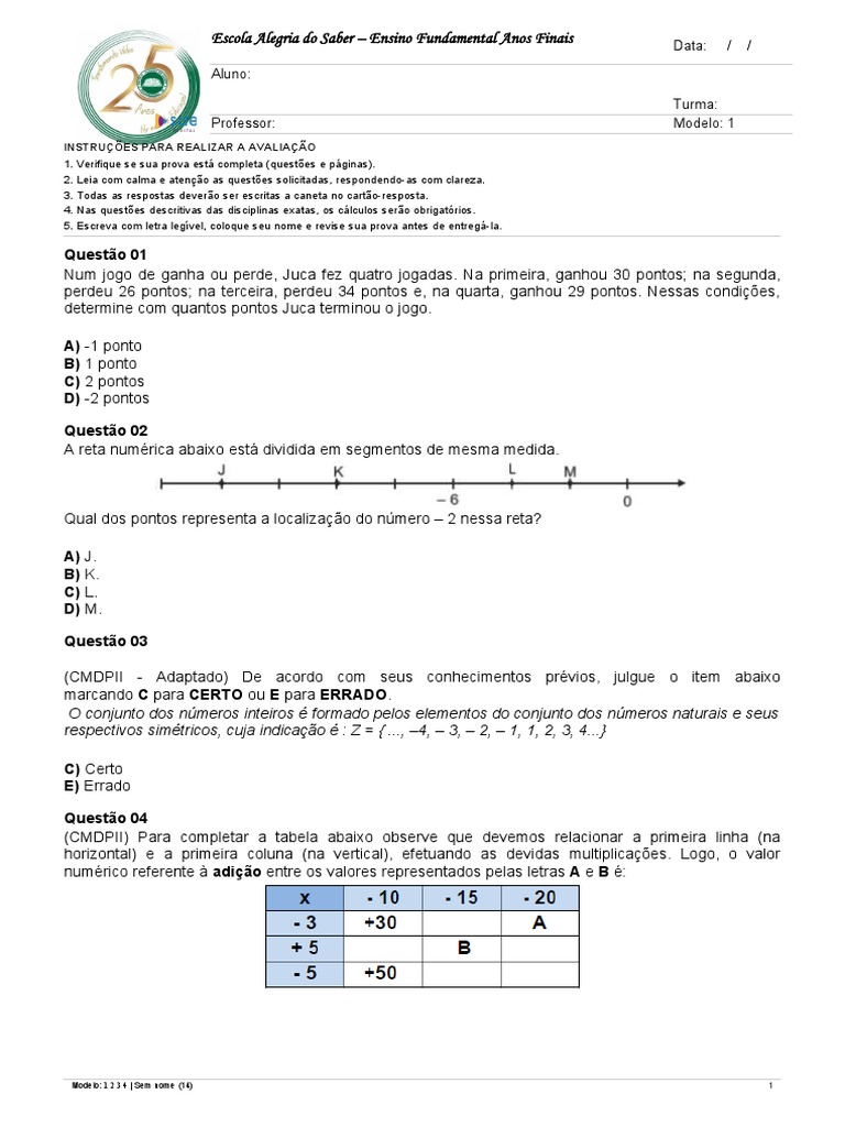 5. Escreva com letra legível, coloque seu nome e revise sua prova antes de entregá-la.