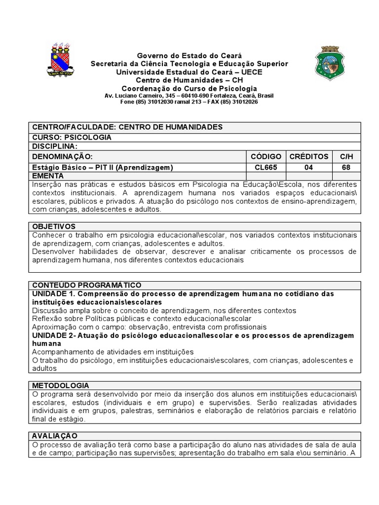 Estágio Básico – PIT II (Aprendizagem) CL665 04 68