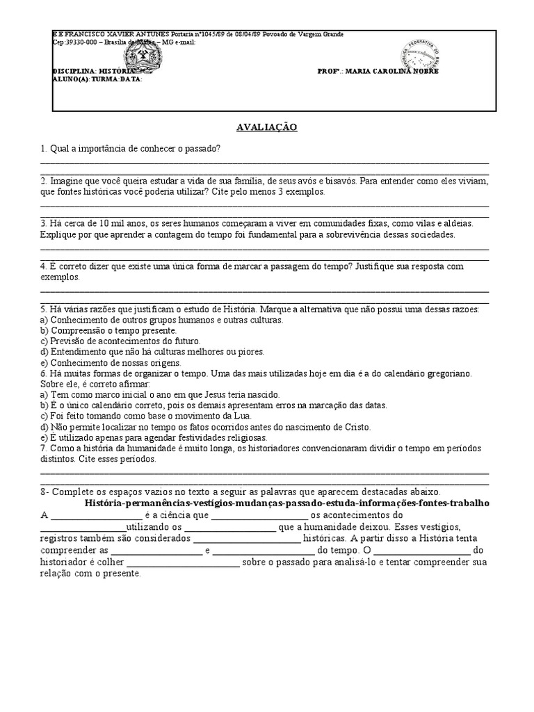 1. Qual a importância de conhecer o passado?