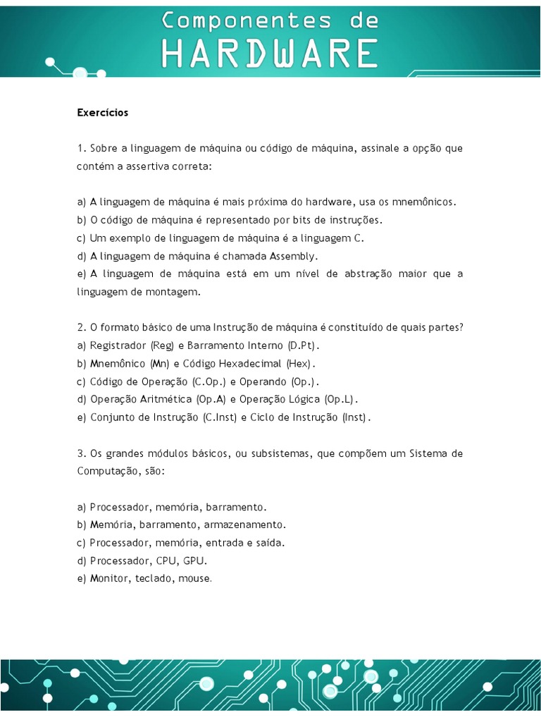 a) A linguagem de máquina é mais próxima do hardware, usa os mnemônicos.