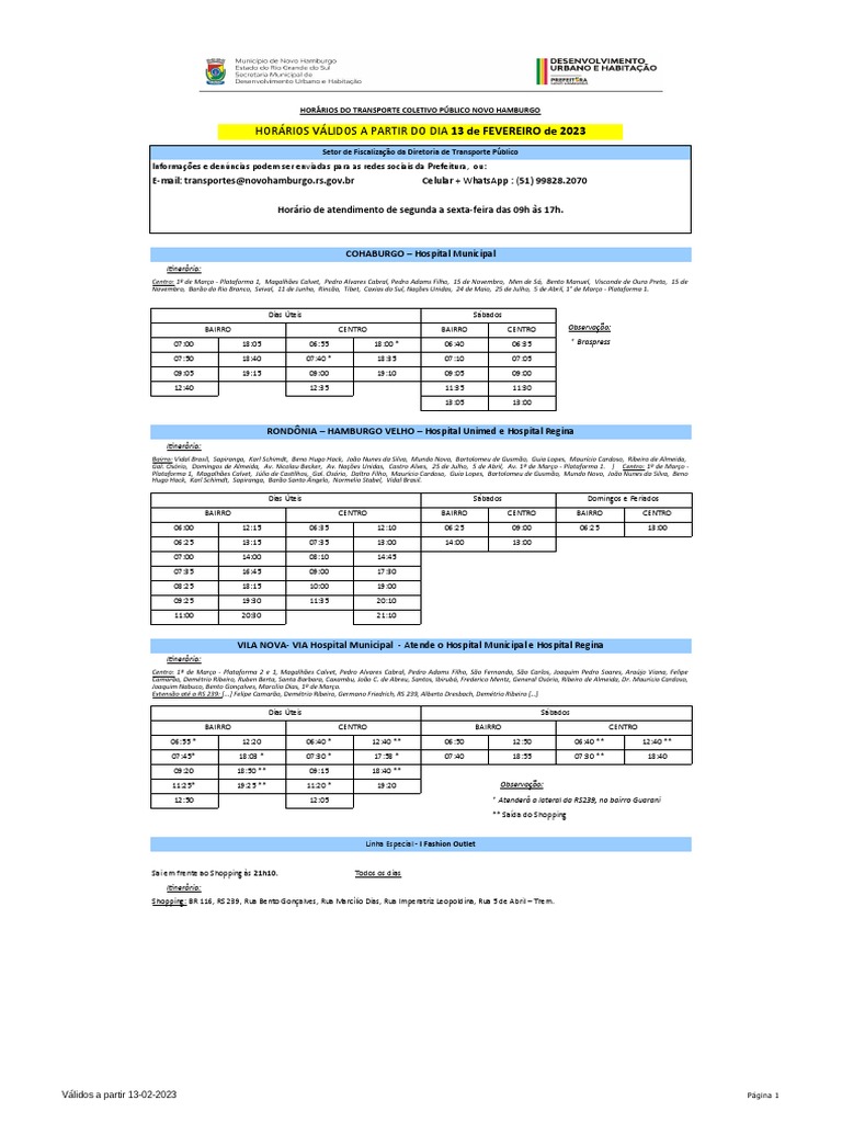 HORÁRIOS DO TRANSPORTE COLETIVO PÚBLICO NOVO HAMBURGO