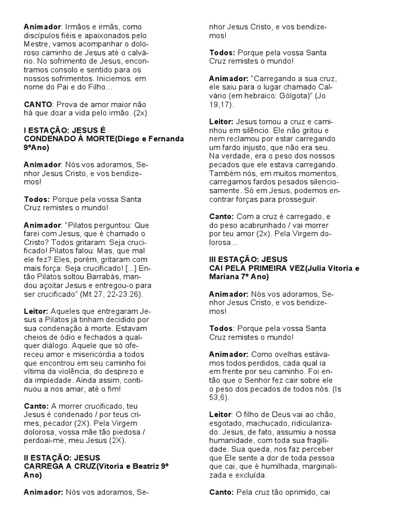 nossos sofrimentos. Iniciemos: em Animador: “Carregando a sua cruz,
