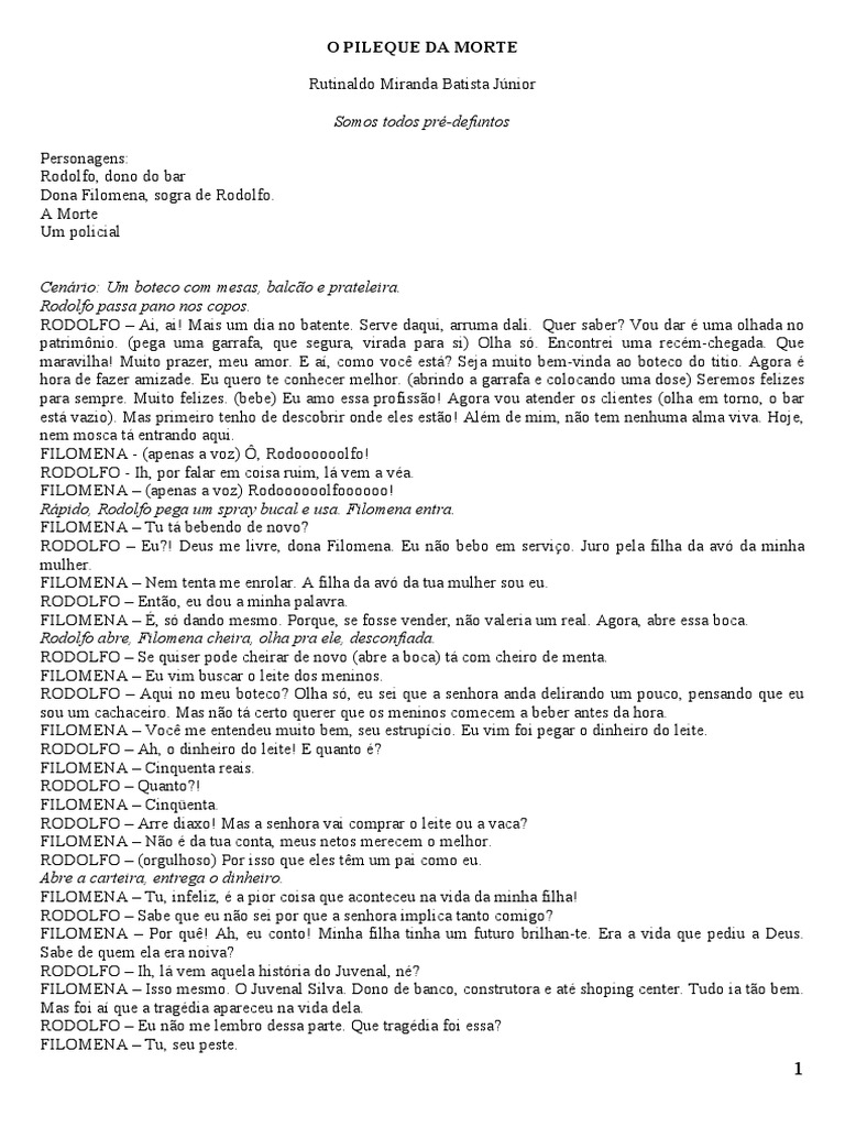 RODOLFO – Que beleza! Enganei a Morte. E, olha só (se apalpando). Estou vivo, vivinho da Silva! Ainda