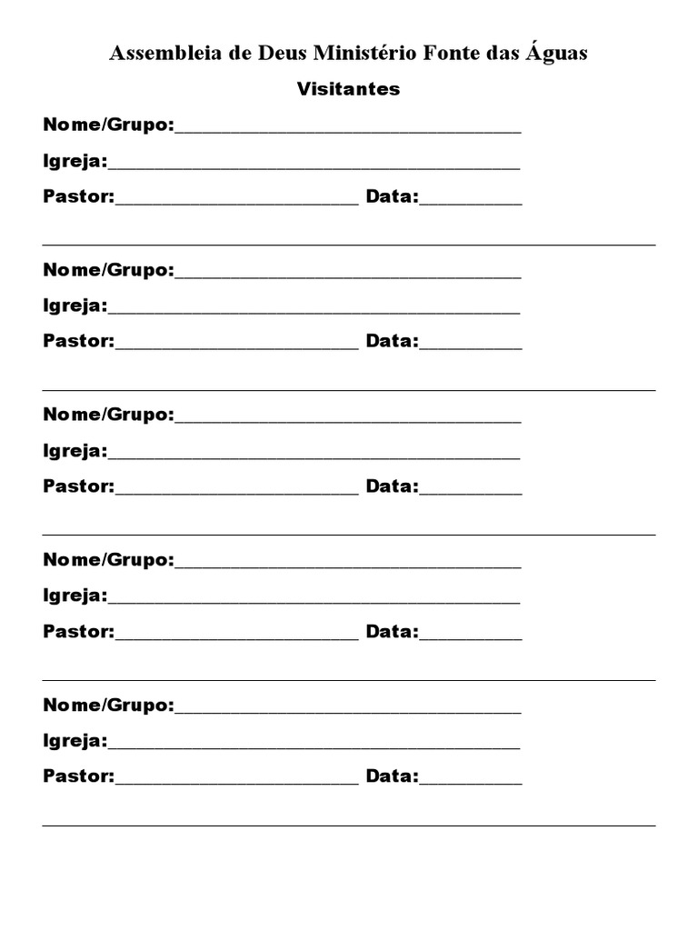 Pastor:__________________________ Data:___________