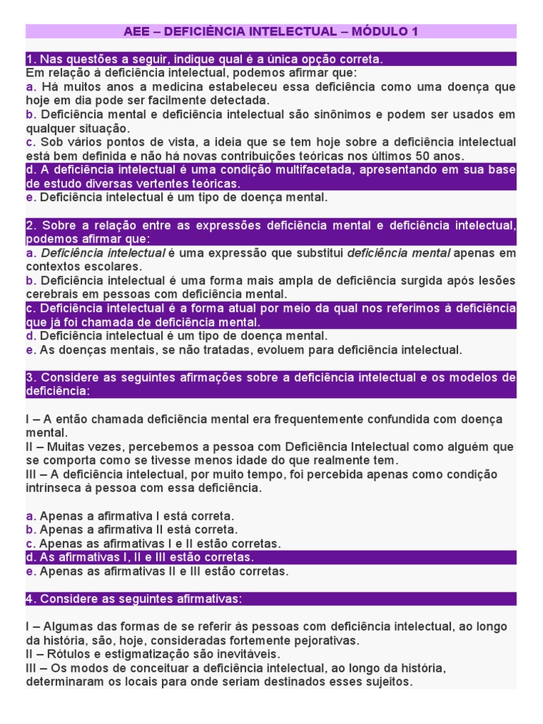 e. As doenças mentais, se não tratadas, evoluem para deficiência intelectual.