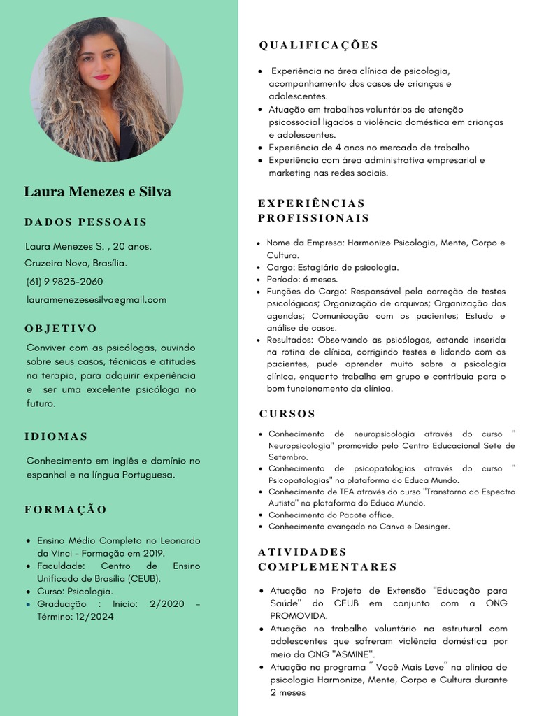 Cruzeiro Novo, Brasília. Cargo: Estagiária de psicologia.