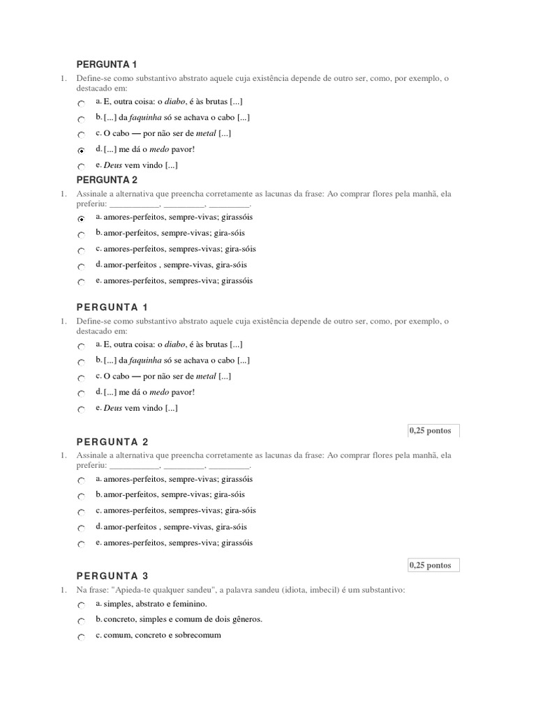 0,25 pontos