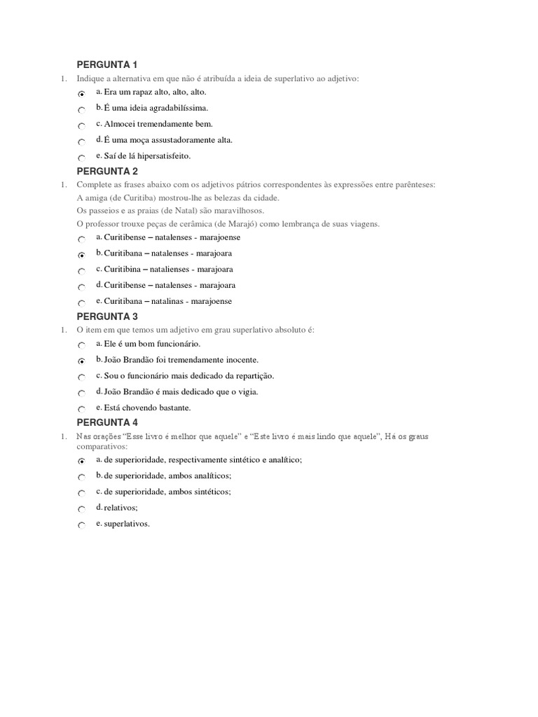 1. Indique a alternativa em que não é atribuída a ideia de superlativo ao adjetivo: