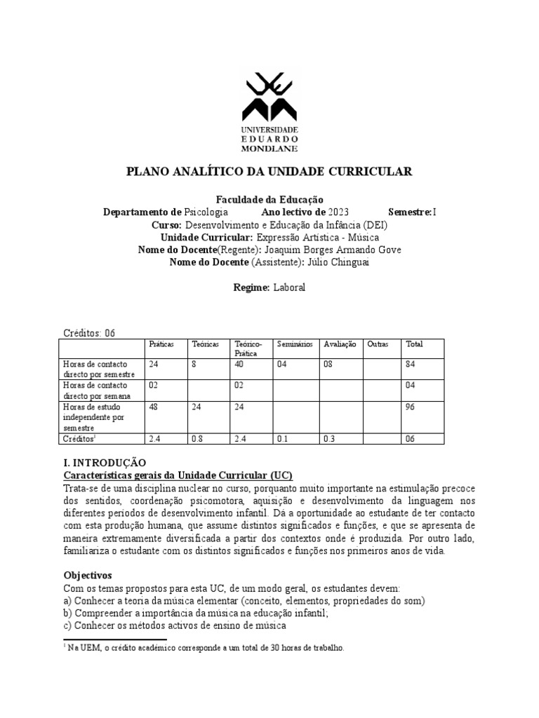 PLANO ANALÍTICO DA UNIDADE CURRICULAR