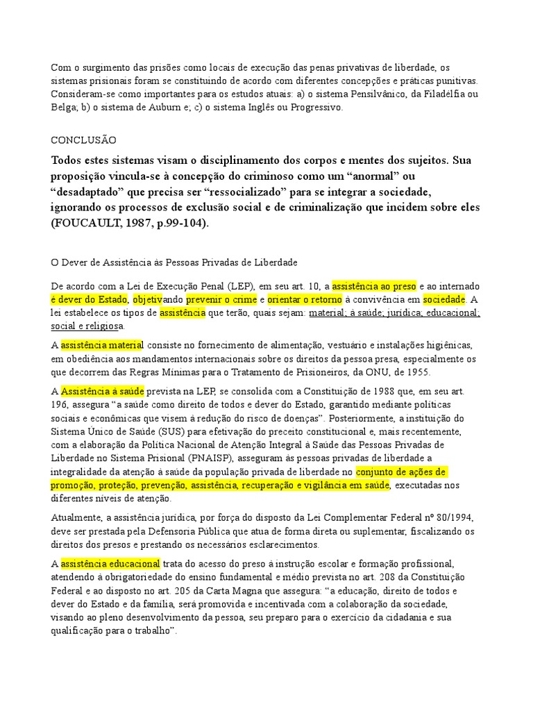 A Assistência à saúde prevista na LEP, se consolida com a Constituição de 1988 que, em seu art.