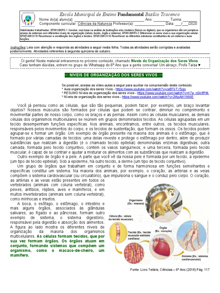 Componente curricular: Ciências da Natureza Professor(a): _______________ Data: ___/___/2020