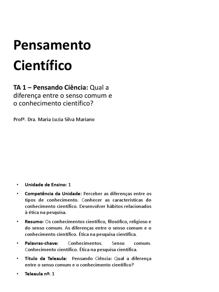 • Título da Teleaula: Pensando Ciência: Qual a diferença