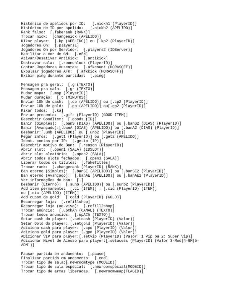 Ban eterno (Simples): [.banSE (APELIDO)] ou [.banSE2 (PlayerID)]